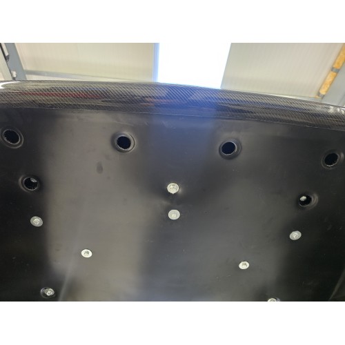 This is a very high quality product like all Knight-Racer R35 carbon parts. However, the brake ventilation duct (which is invisible when fitted) is made using high quality FRP rather than completely out of Carbon Fibre.